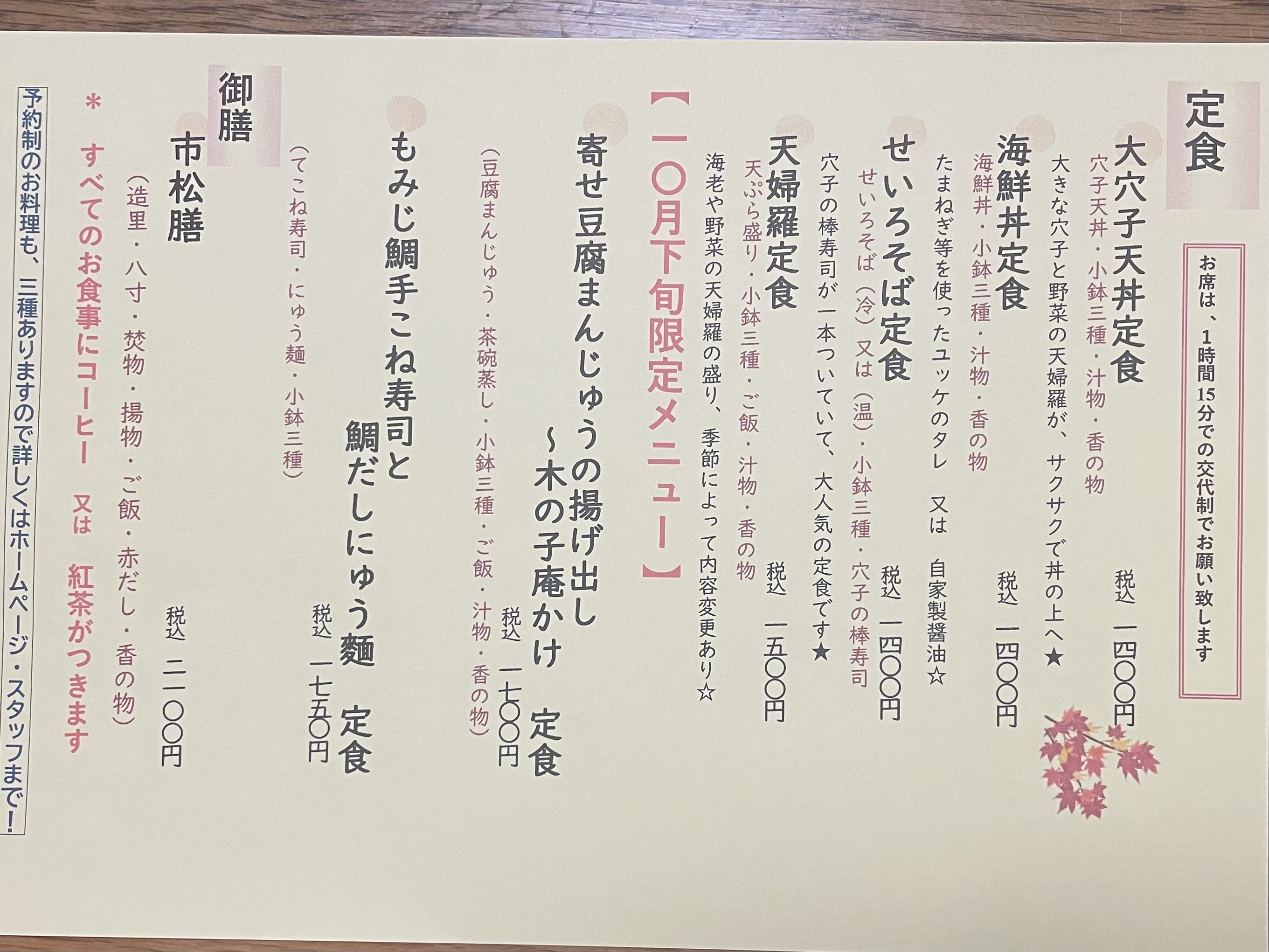 10月下旬のランチメニュー!